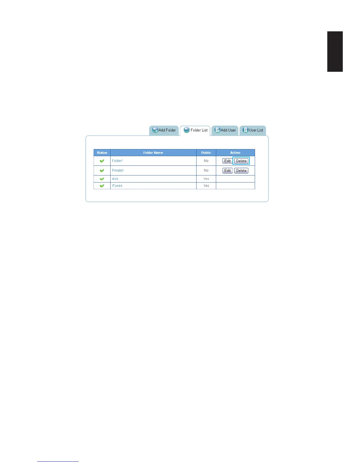 1. In the Folder List tab, select a folder and click Delete.