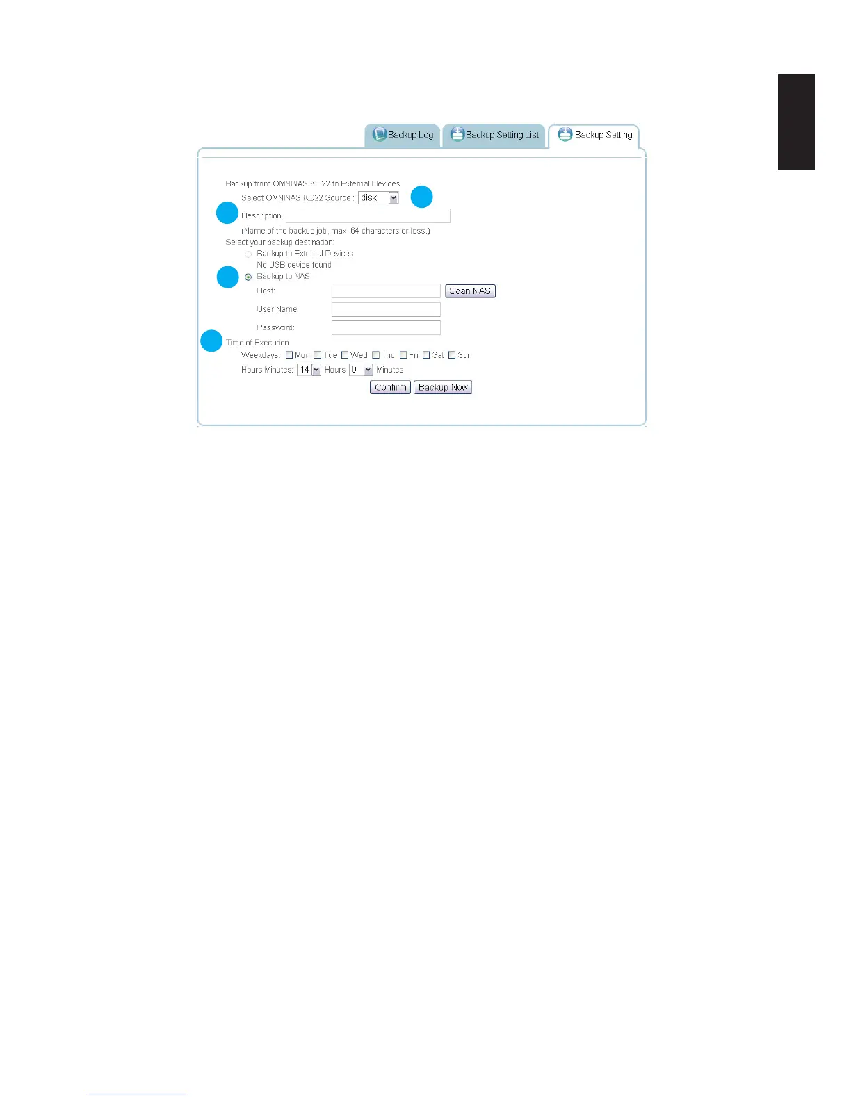 4. Select the backup destination (external devices or a second OMNINAS device in the same