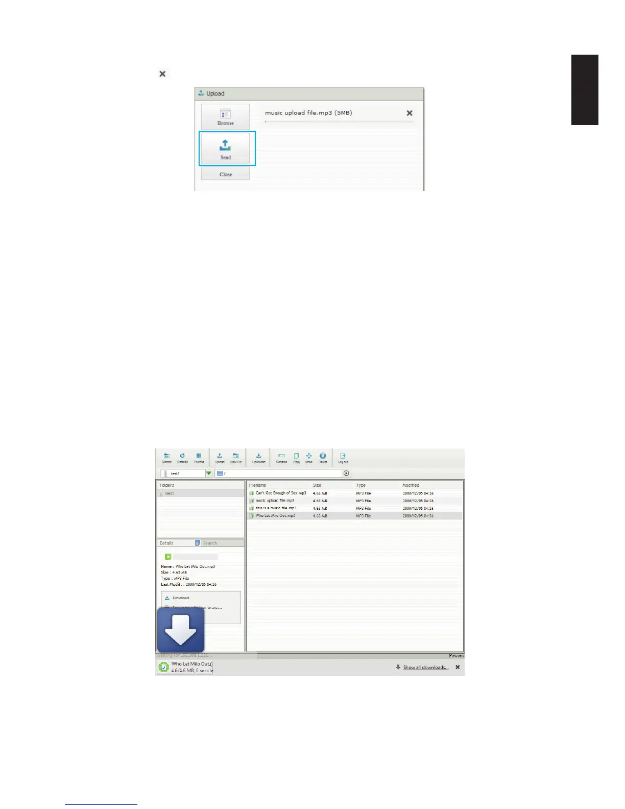 6. The Upload screen appears, click Send to nish the upload process. Alternatively, click the