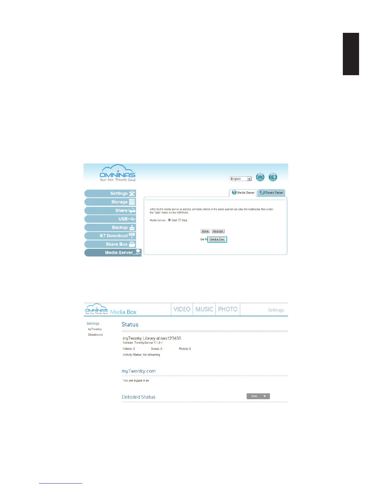 1. In Media Server, click Media Box to open a browser window and display the OMNINAS