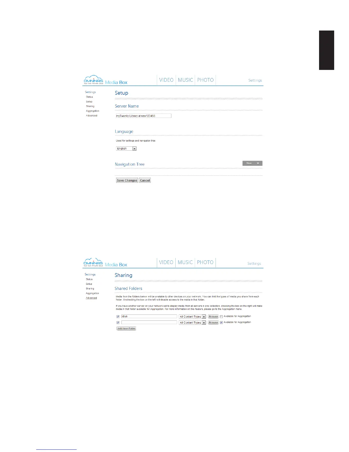 Media Box Sharing Settings