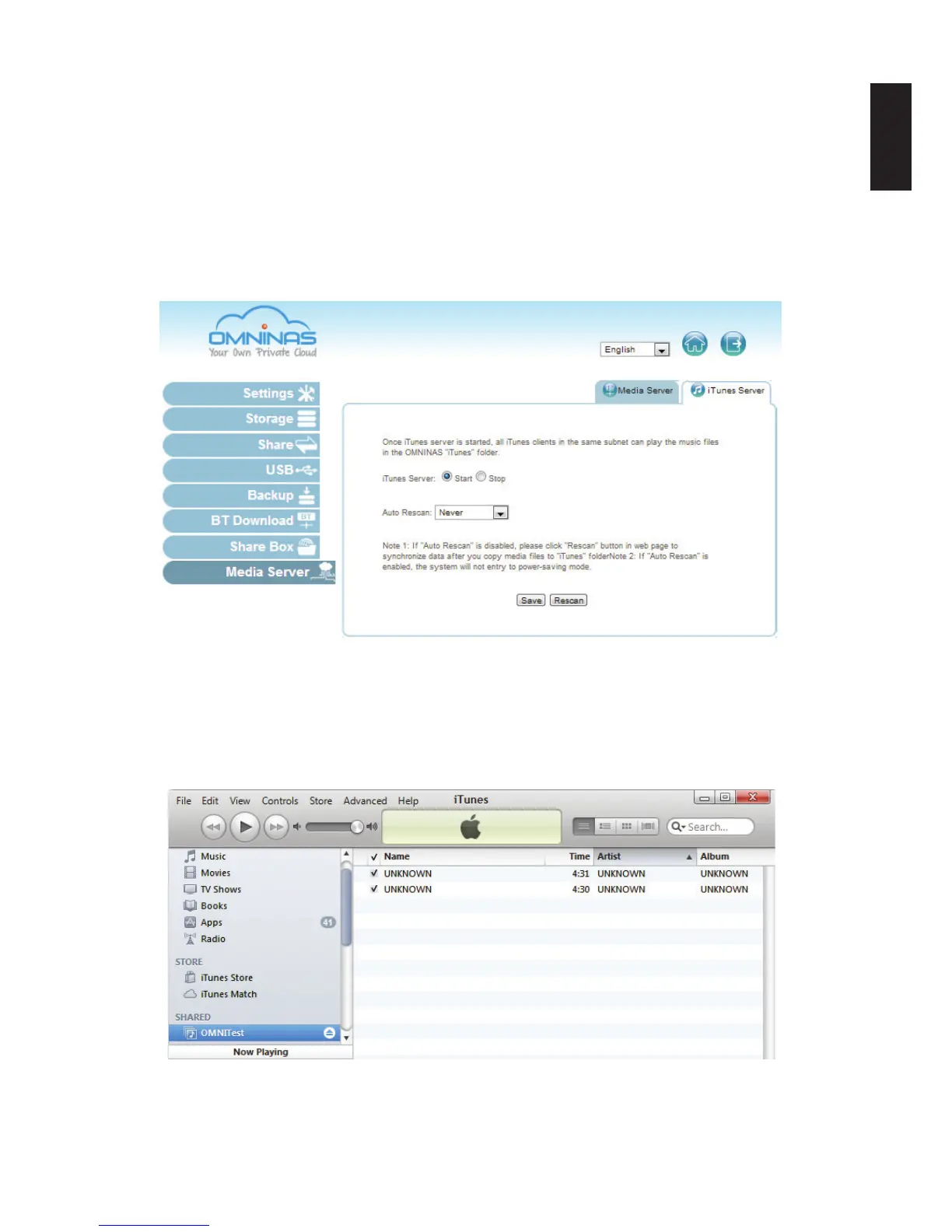 The service provides access to the iTunes folder on the OMNINAS. By enabling this function,