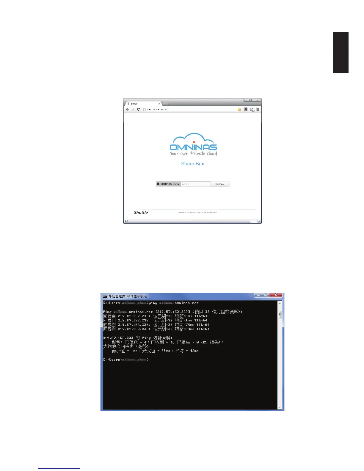 Step 3: Type www.omninas.net in browser to check Shuttle DDNS server connection. If connection is