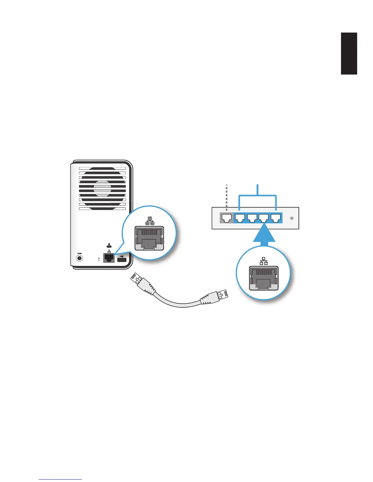 1. Connect one end of the provided LAN cable to the LAN port on the OMNINAS.