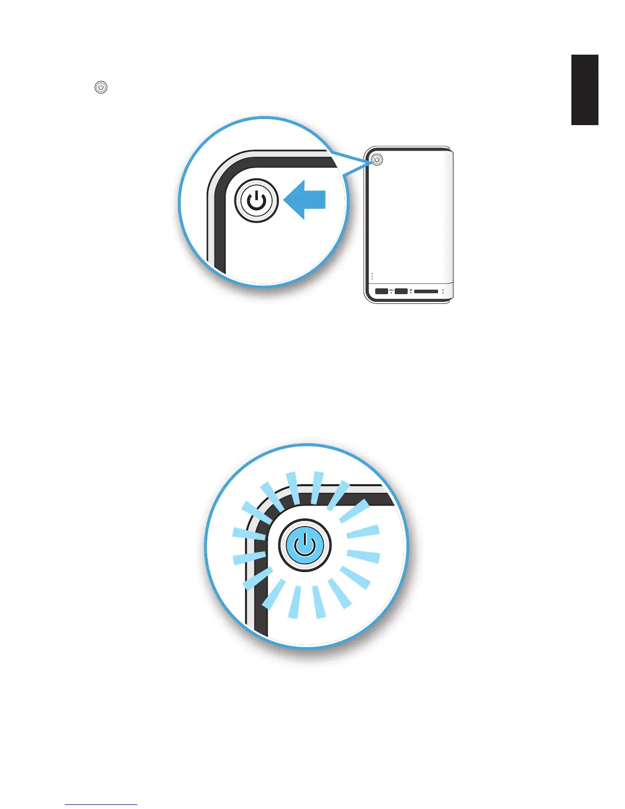 Press to power on. The status LED starts to blink. This process may take 1 to 2 minutes.
