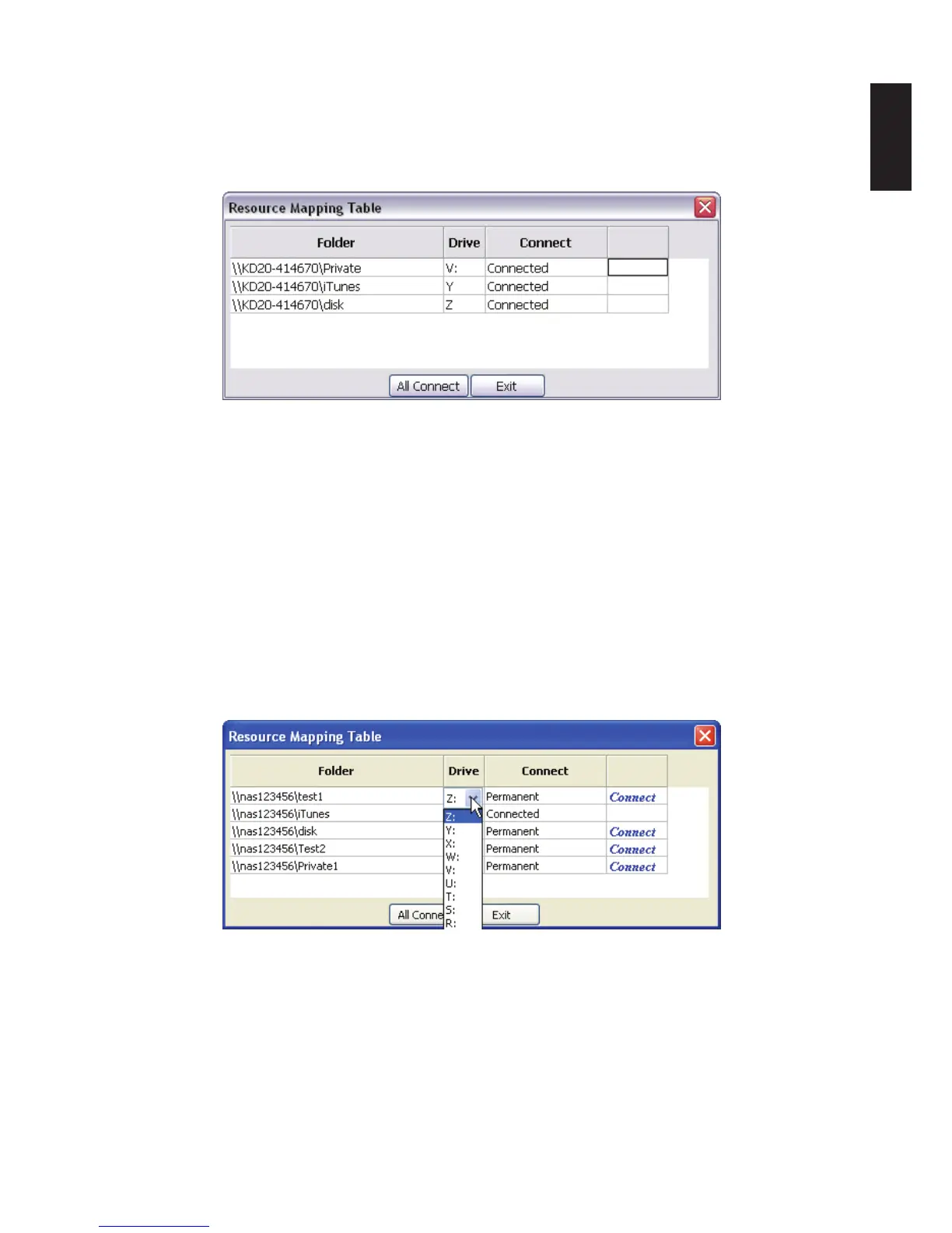 The Resource Mapping table displays. The table lists available OMNINAS folders, drive let-