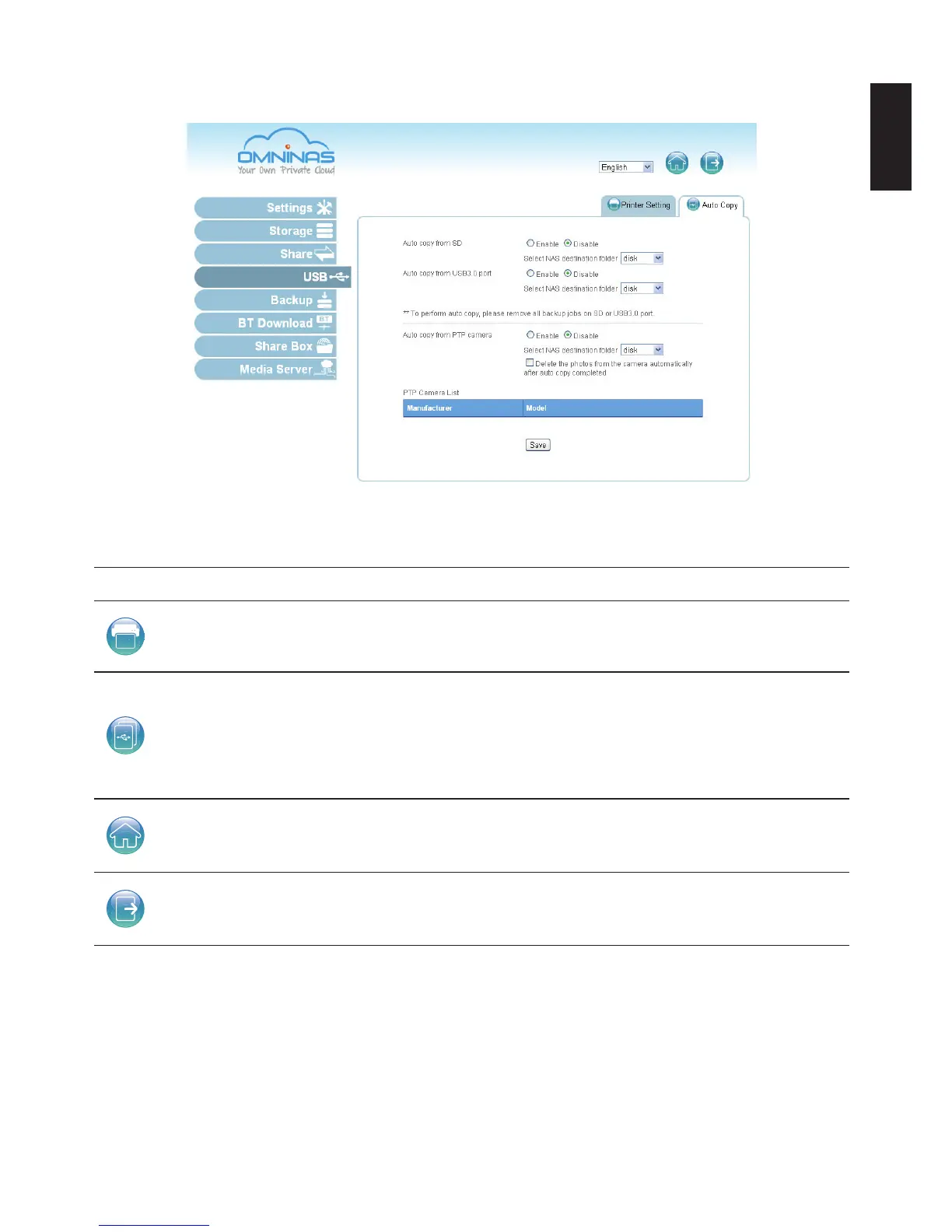 Enable or disable auto copying function to an SD card or an external (USB) de-