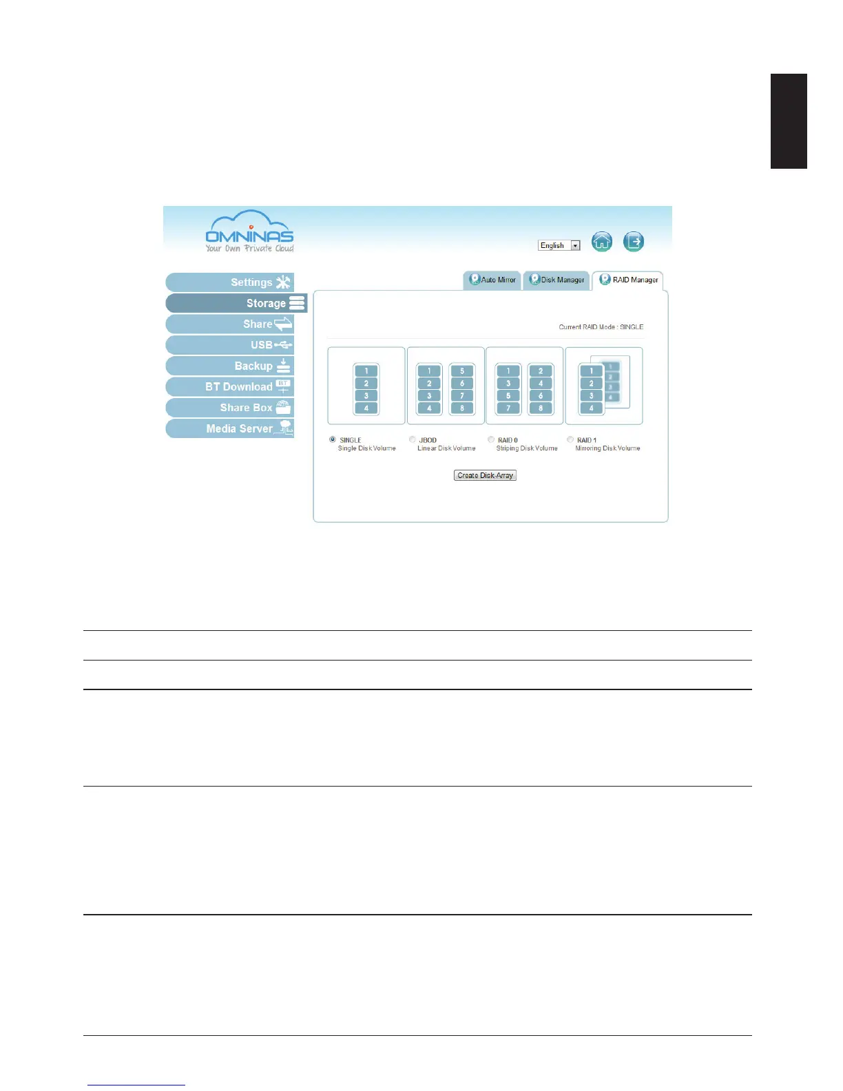 storage. The Storage function allows access to RAID Manager, Disk Manager and Auto Mirror to