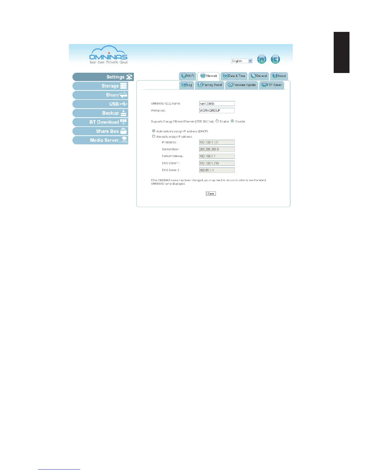 3. Enter the IP address, Subnet Mask, Default Gateway, and DNS server settings.