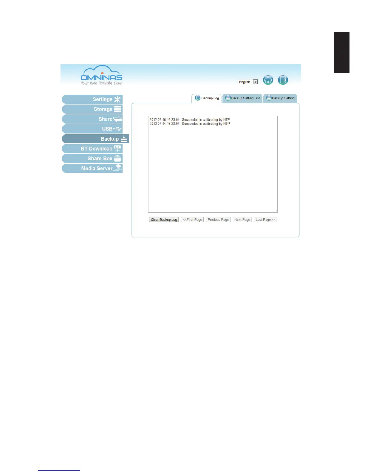 The Backup function allows you to view and setup backup schedules, settings lists and logs.