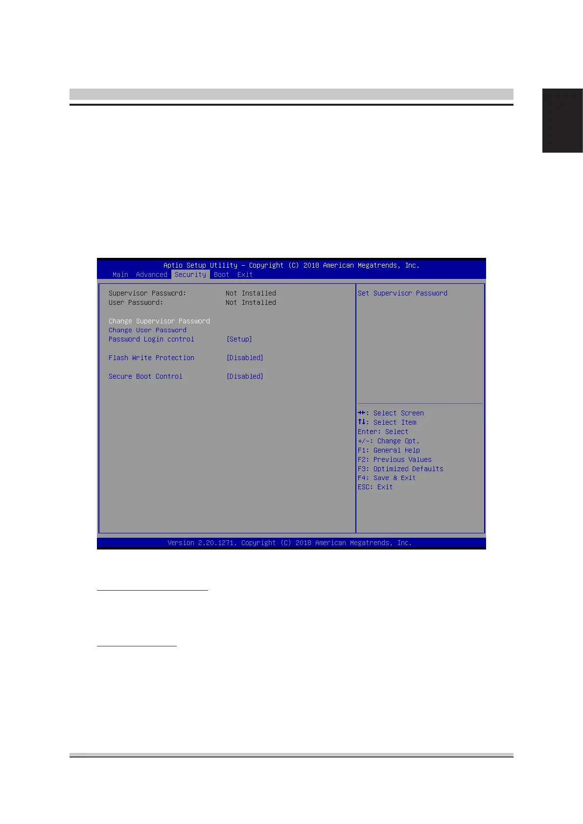 screen. You can display an Security BIOS Setup option by highlighting it using the