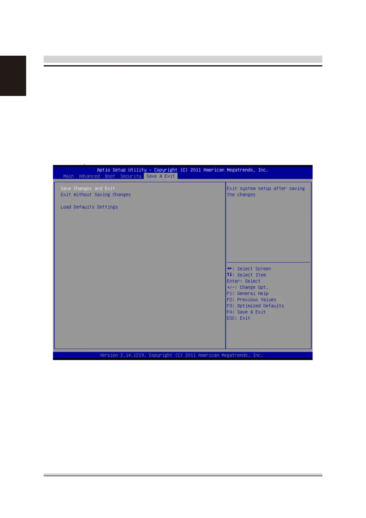 All Exit BIOS Setup options are described in this section.