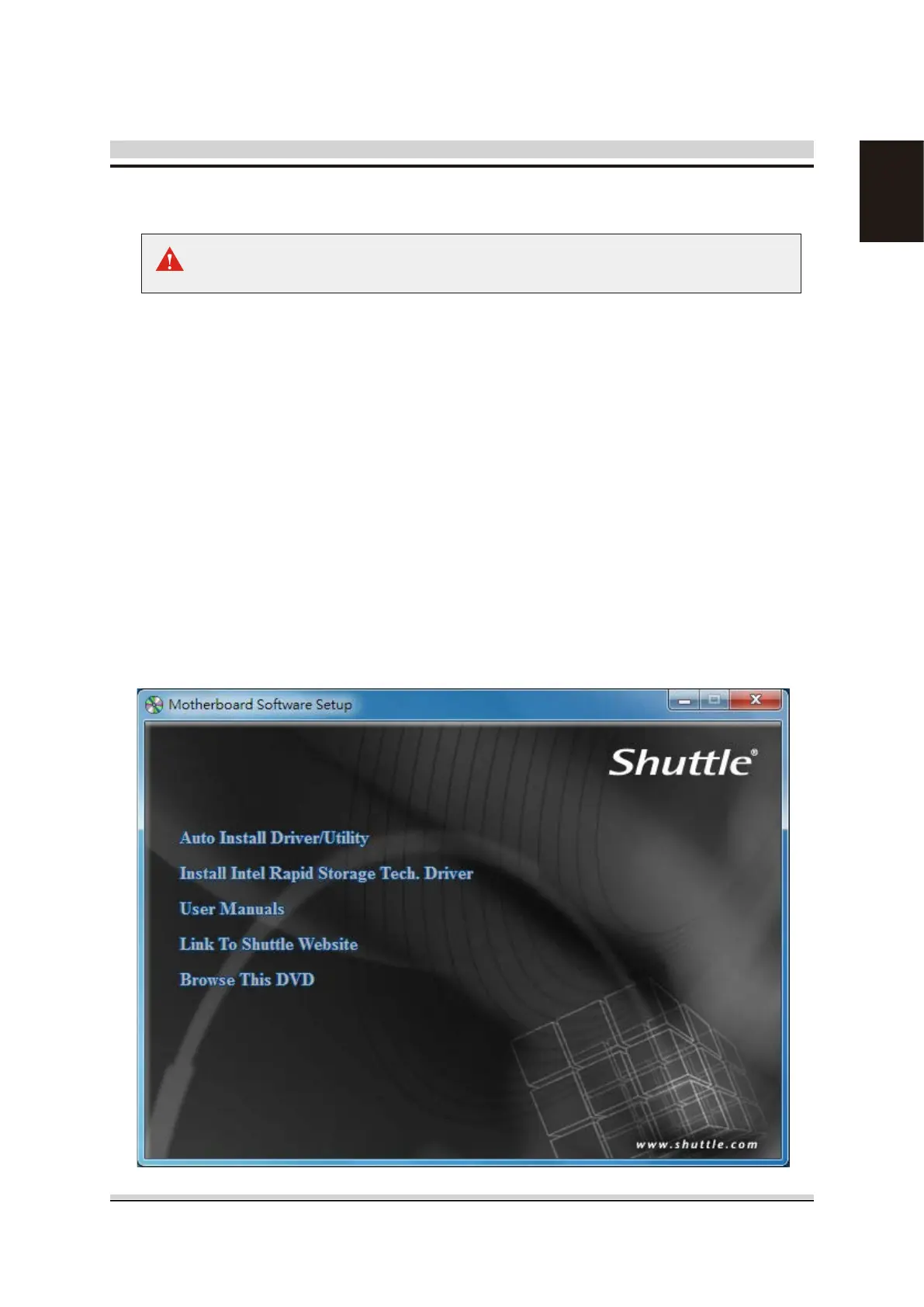 icon in My Computer to bring up Shuttle Mainboard Software Setup screen.