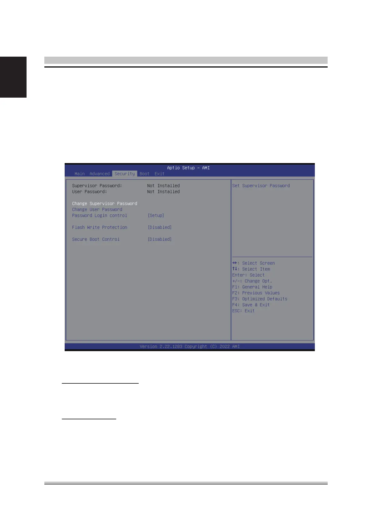 <Arrow> keys. All Security BIOS Setup options are described in this section.