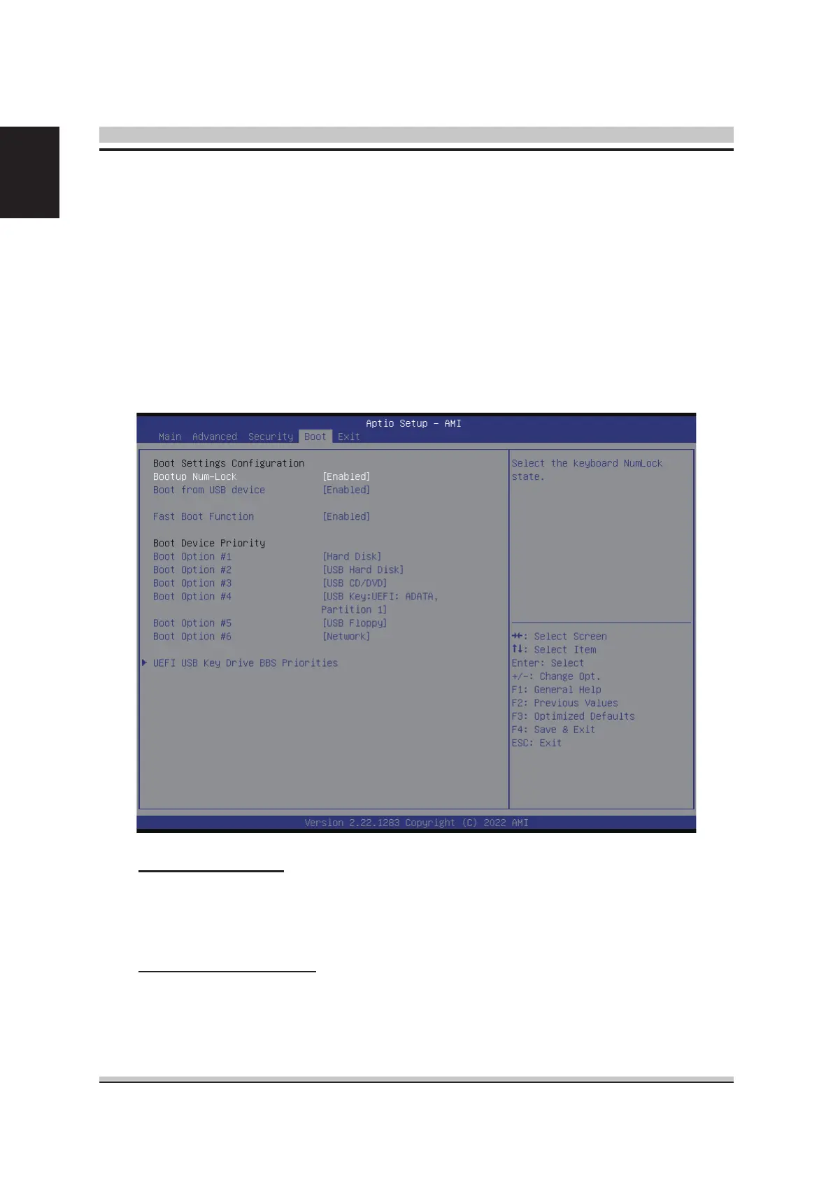 All Boot BIOS Setup options are described in this section.