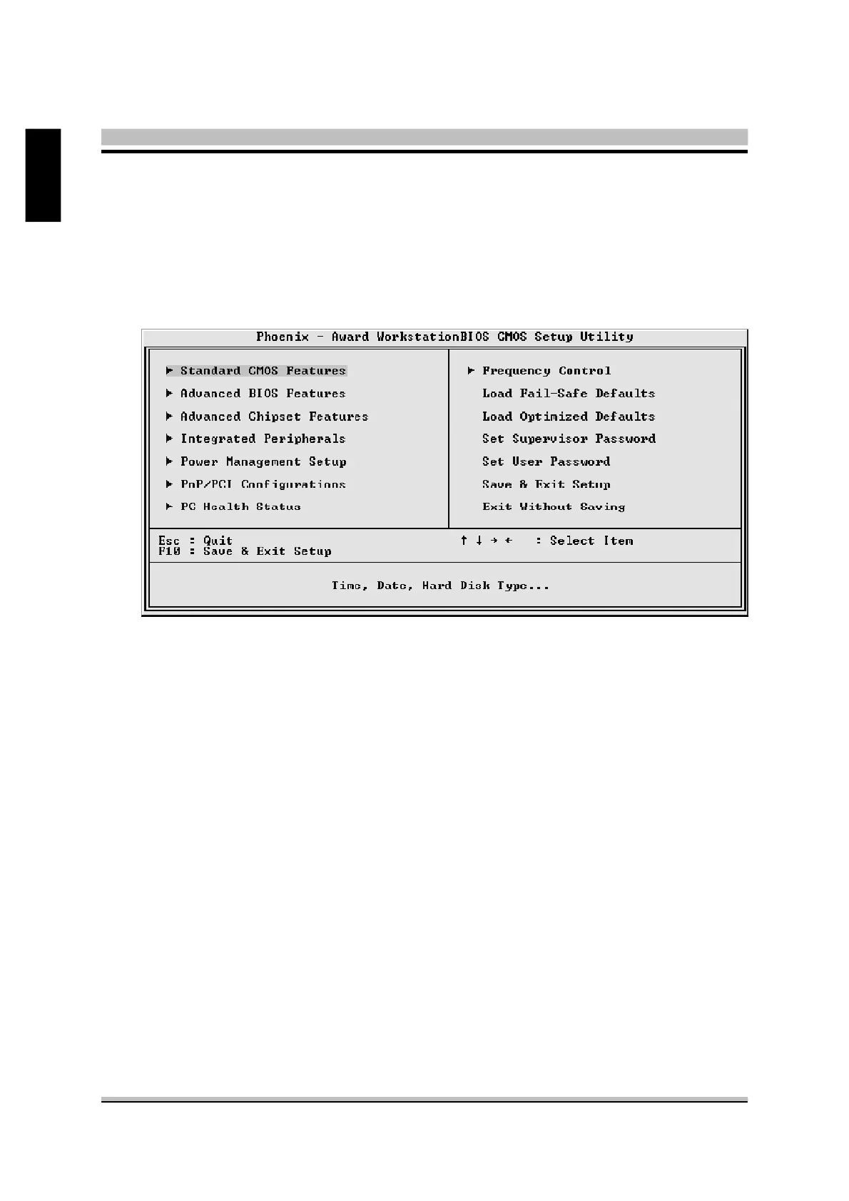Once you enter the AwardBIOS(tm) CMOS Setup Utility, the Main Menu will