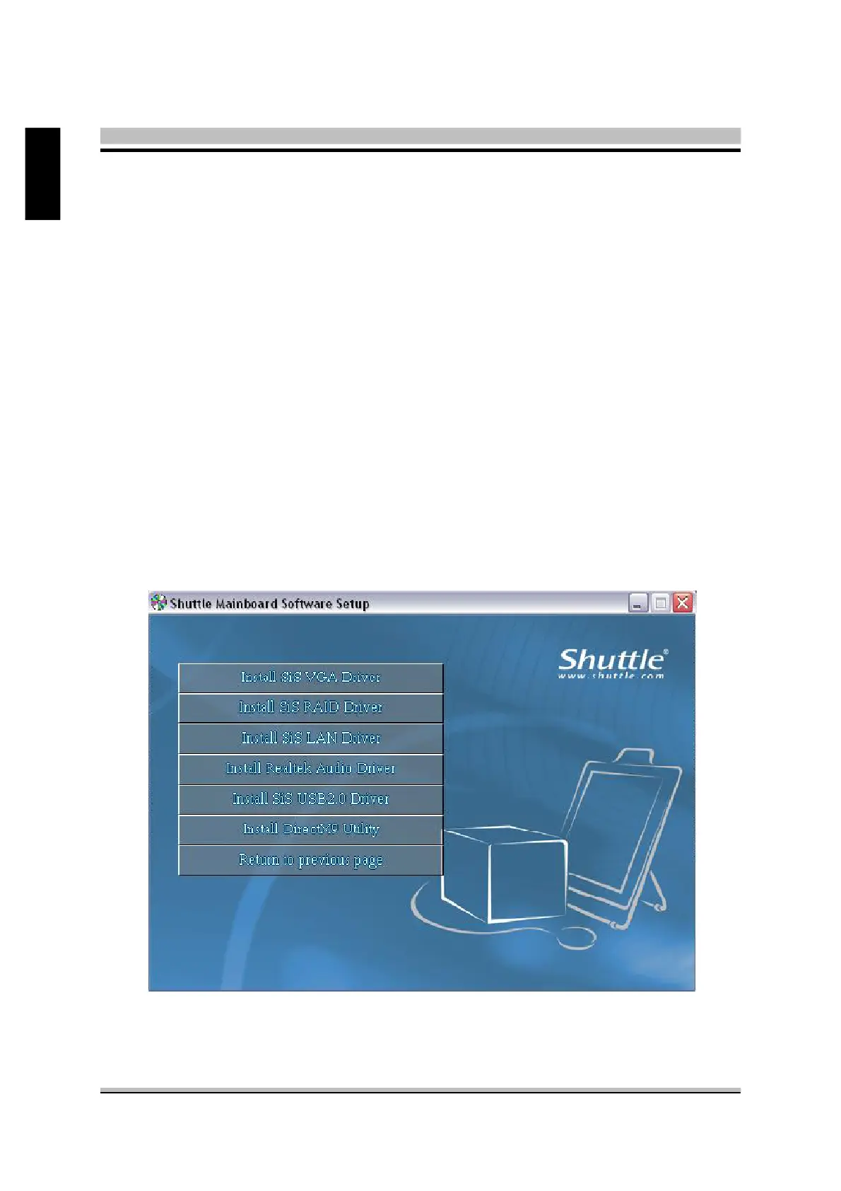Click the “Install Main-board Software“ bar. Individually install the following drivers.