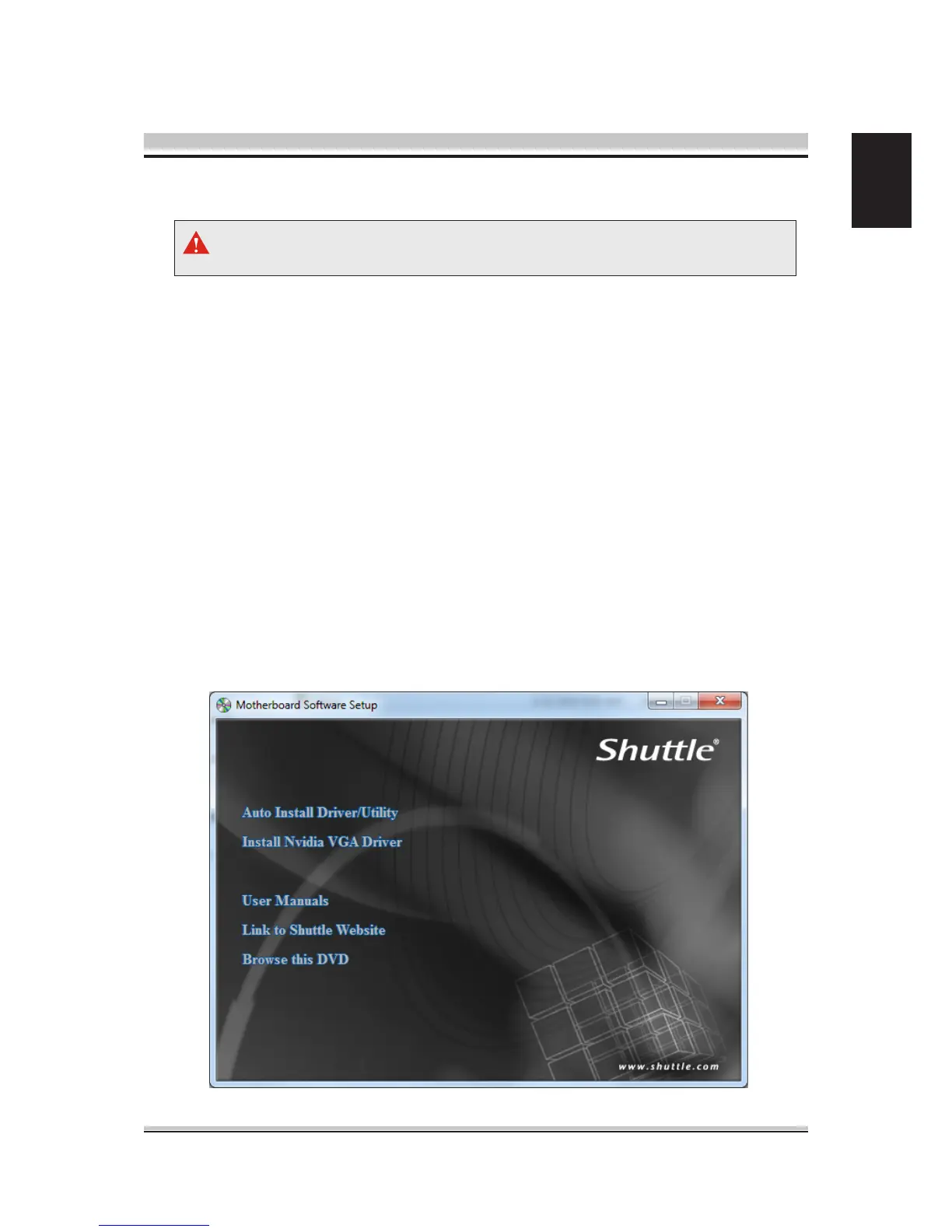 icon in My Computer to bring up Shuttle Mainboard Software Setup screen.