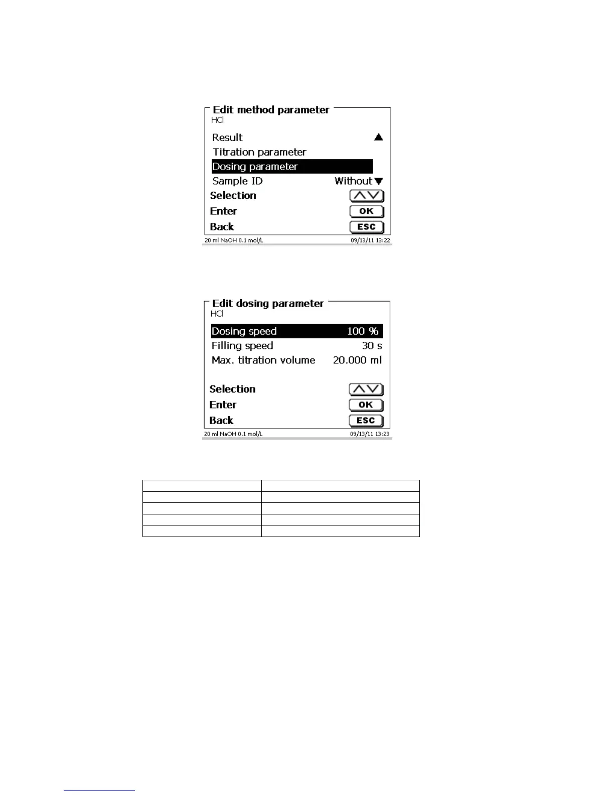 7KHGRVLQJSDUDPHWHUVGRVLQJVSHHGILOOLQJVSHHG DQGPD[ GRVLQJWLWUDWLRQ YROXPHDUHGHWHUPLQHGIRUHDFK