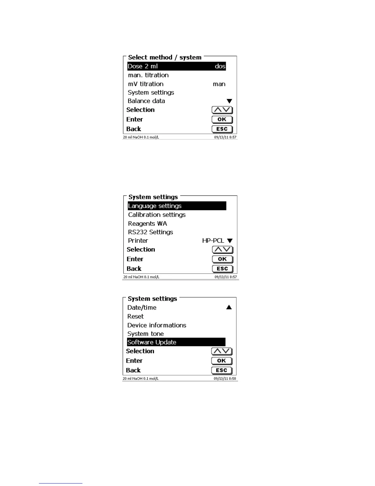 ([LVWLQJ PHWKRGV FDQ EH VHOHFWHG E\ SUHVVLQJ WKH Ļ! XQG Ĺ! NH\V DQG FRQILUPLQJ WKH VHOHFWLRQ ZLWK