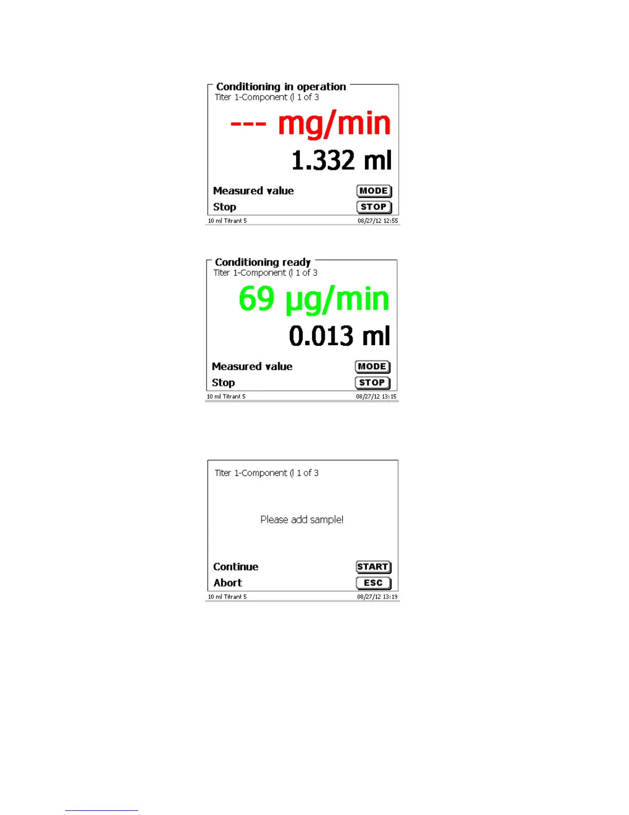 The conditioning remains active until the actual titration is started by pressing <F1/START>. You are prompted