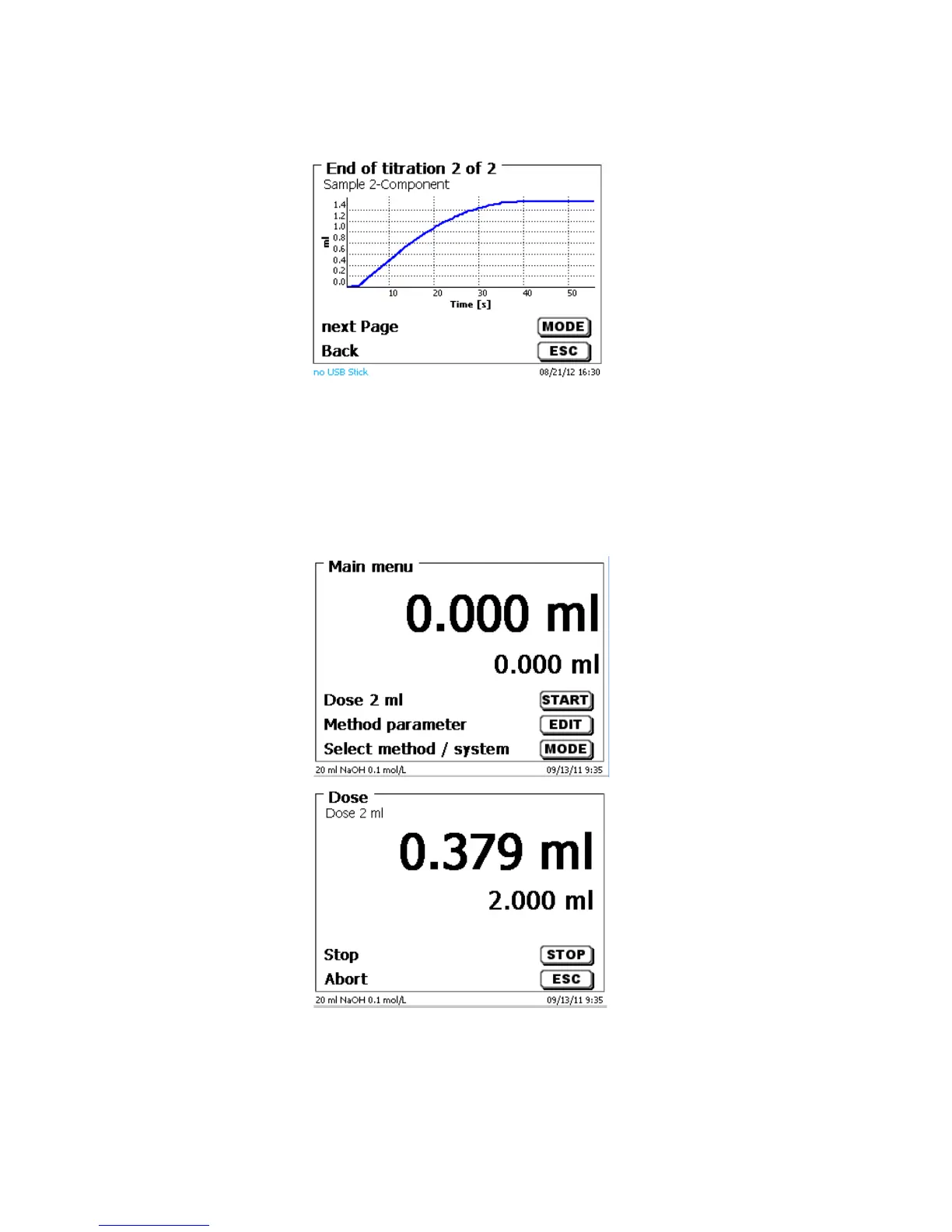 stick”.<ESC> will take you back to the main menu where you can start the next titration immediately.