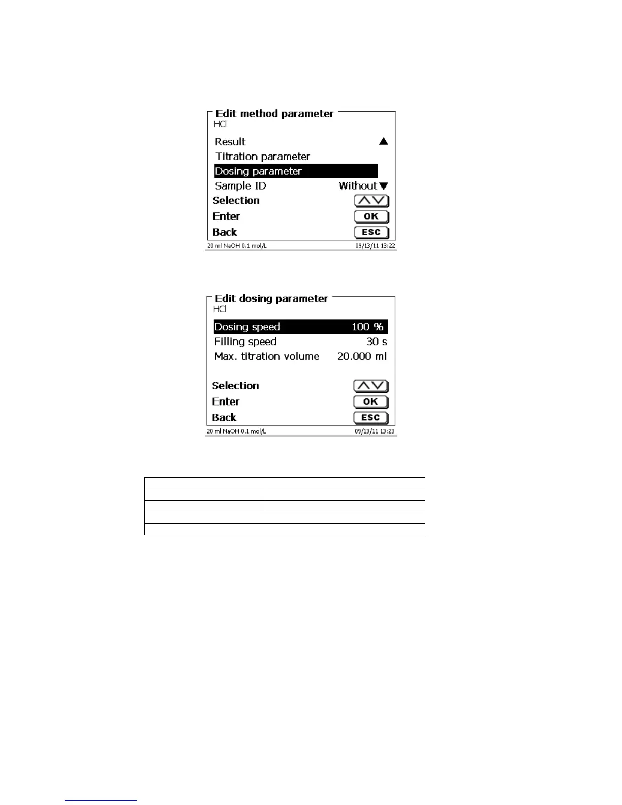 The dosing parameters (dosing speed, filling speed and max. dosing/titration volume) are determined for each