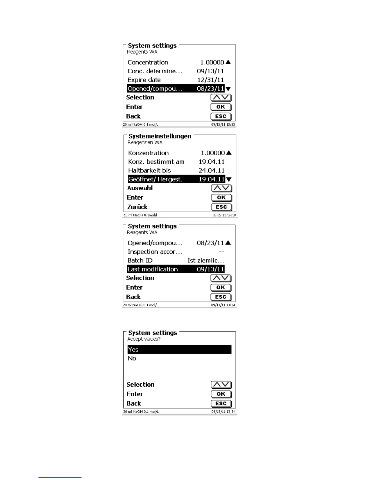 If <Yes> is selected, the updated values will be written into the RFID transponder of the interchangeable unit.