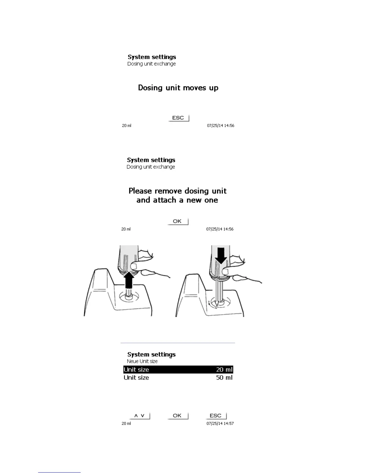 Accept by pushing <OK>/<ENTER>. In case you changed the size of the dosing unit, you can choose which size