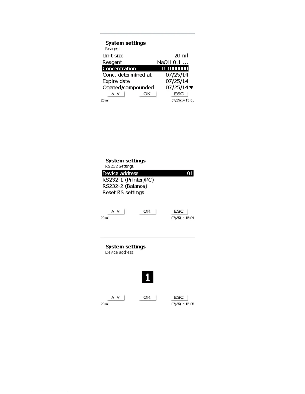 The <RS232 settings> item can be used to determine the device address of the TITRONIC