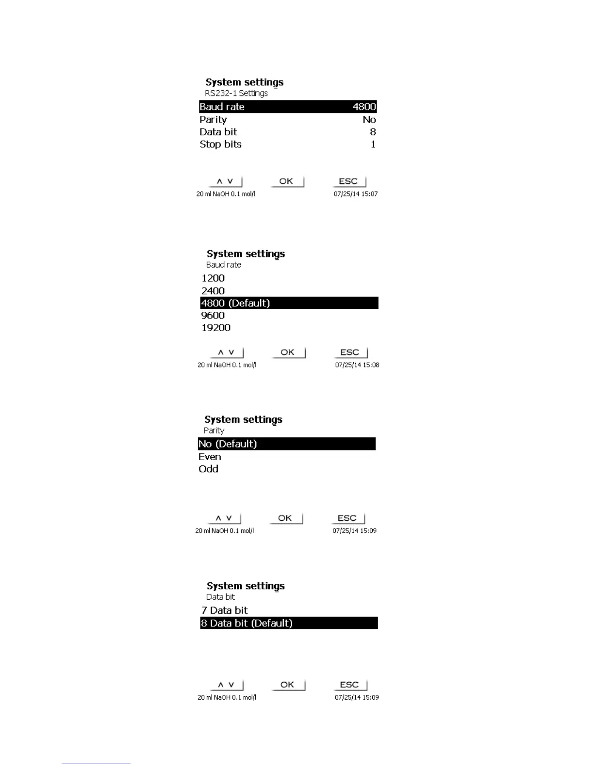The baud rate is preset to 4800. It may be set to 1200 – 19200: