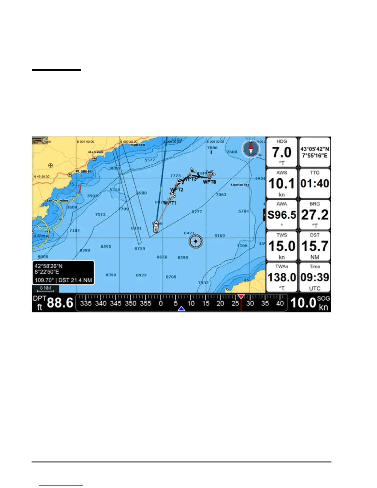 During navigation you will see your Course Over Ground and bearing on the compass bar,