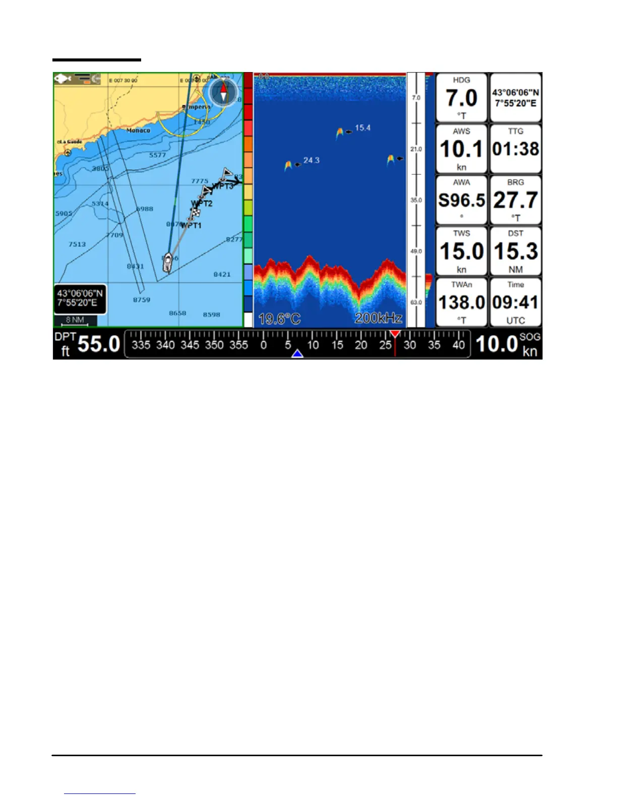 The Split page is a screen split between map and Fish Finder. Each half of the split view has its own