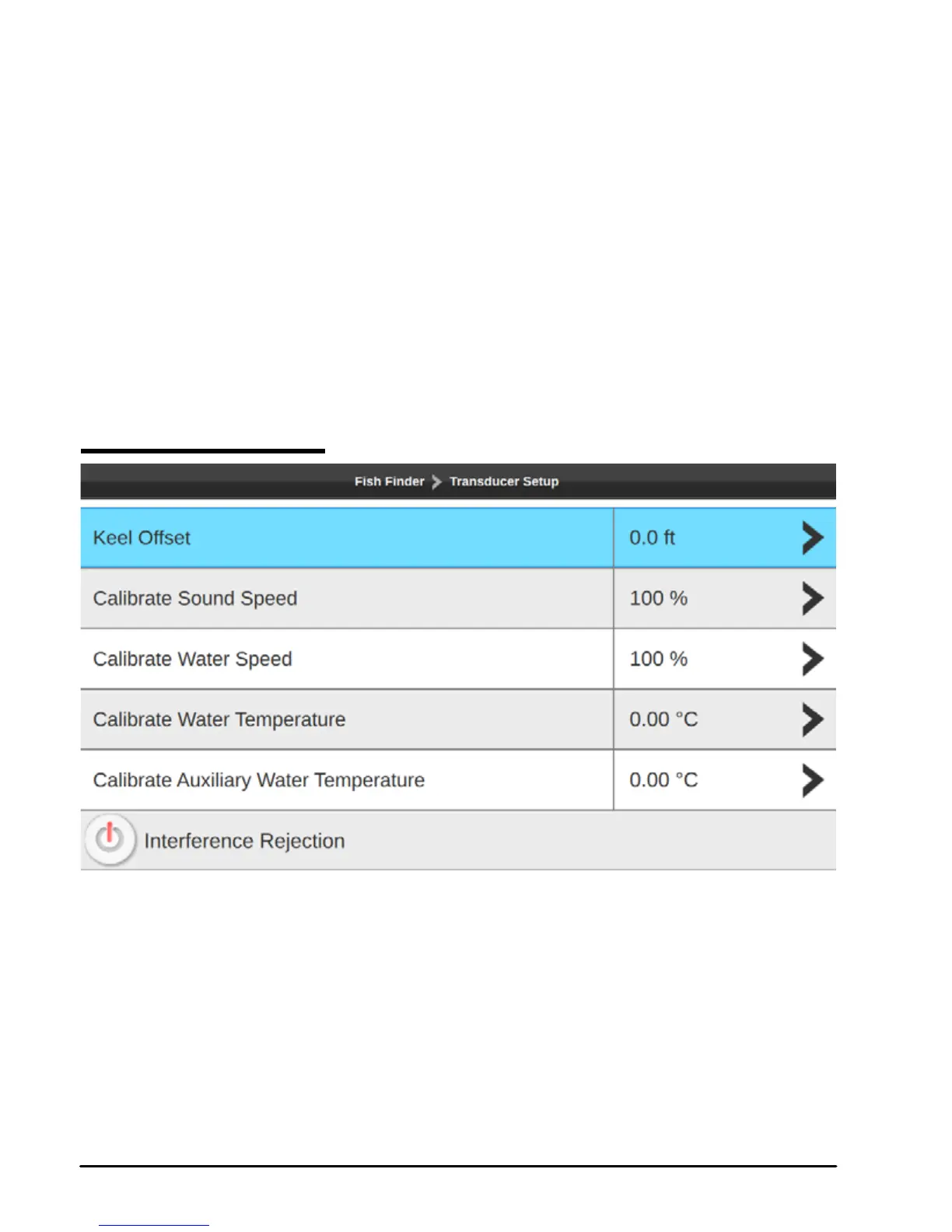 ●Keel oset: the transducer depth oset from the surface. This makes it possible to
