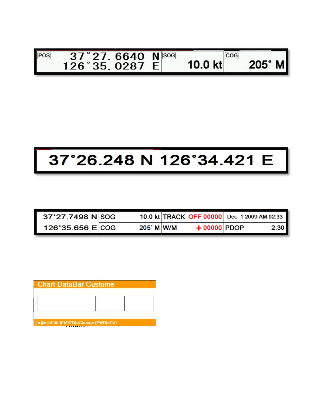 Showing the LAT/LOT, SOG, COG and userdata.