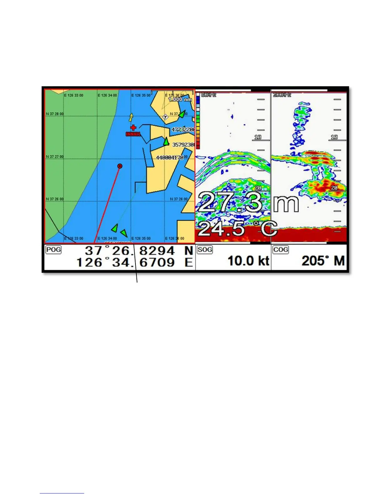 When pressing [ACTIVE], the red box moves to to chartplotter or fishfinder.