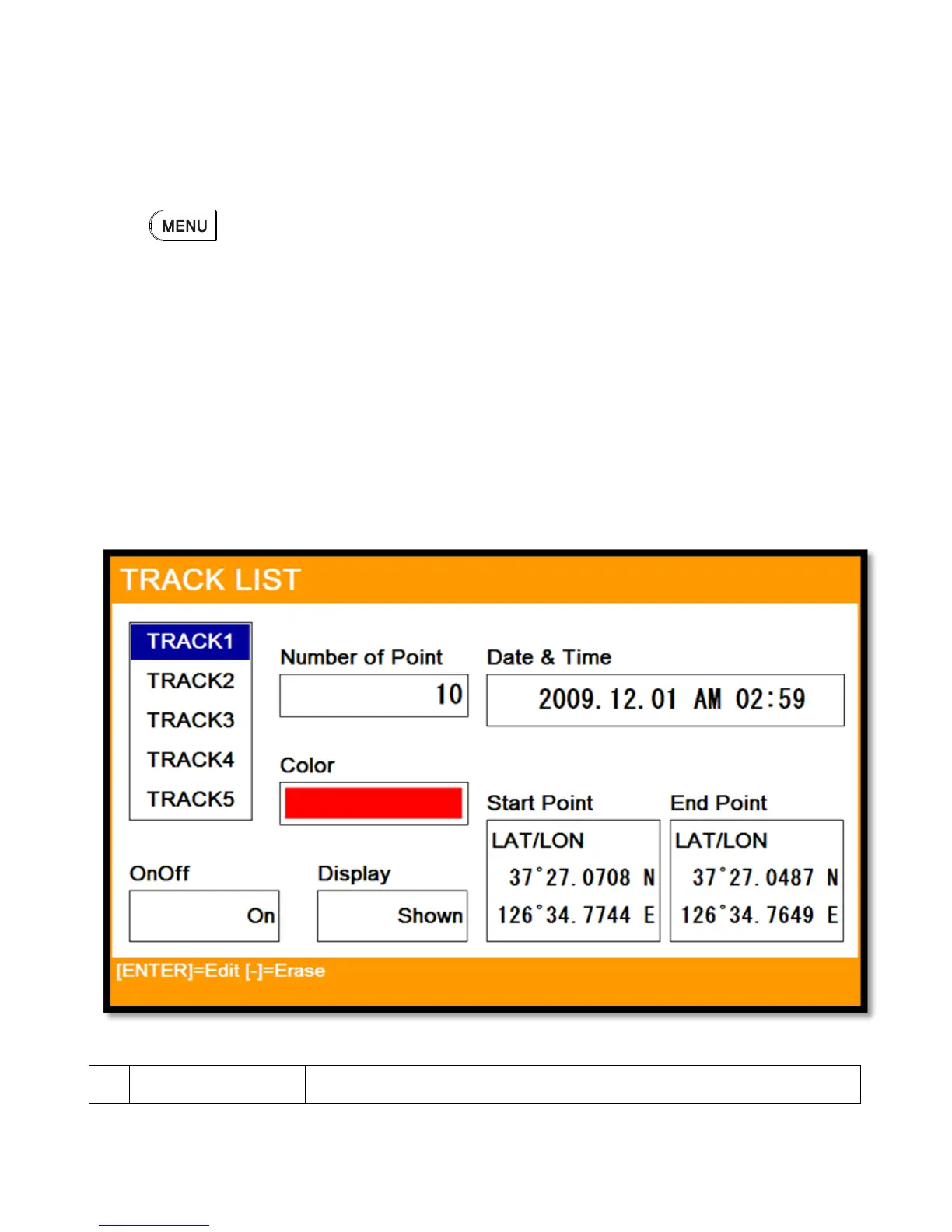 ▶[MENU]->Userdata->Track->Erase