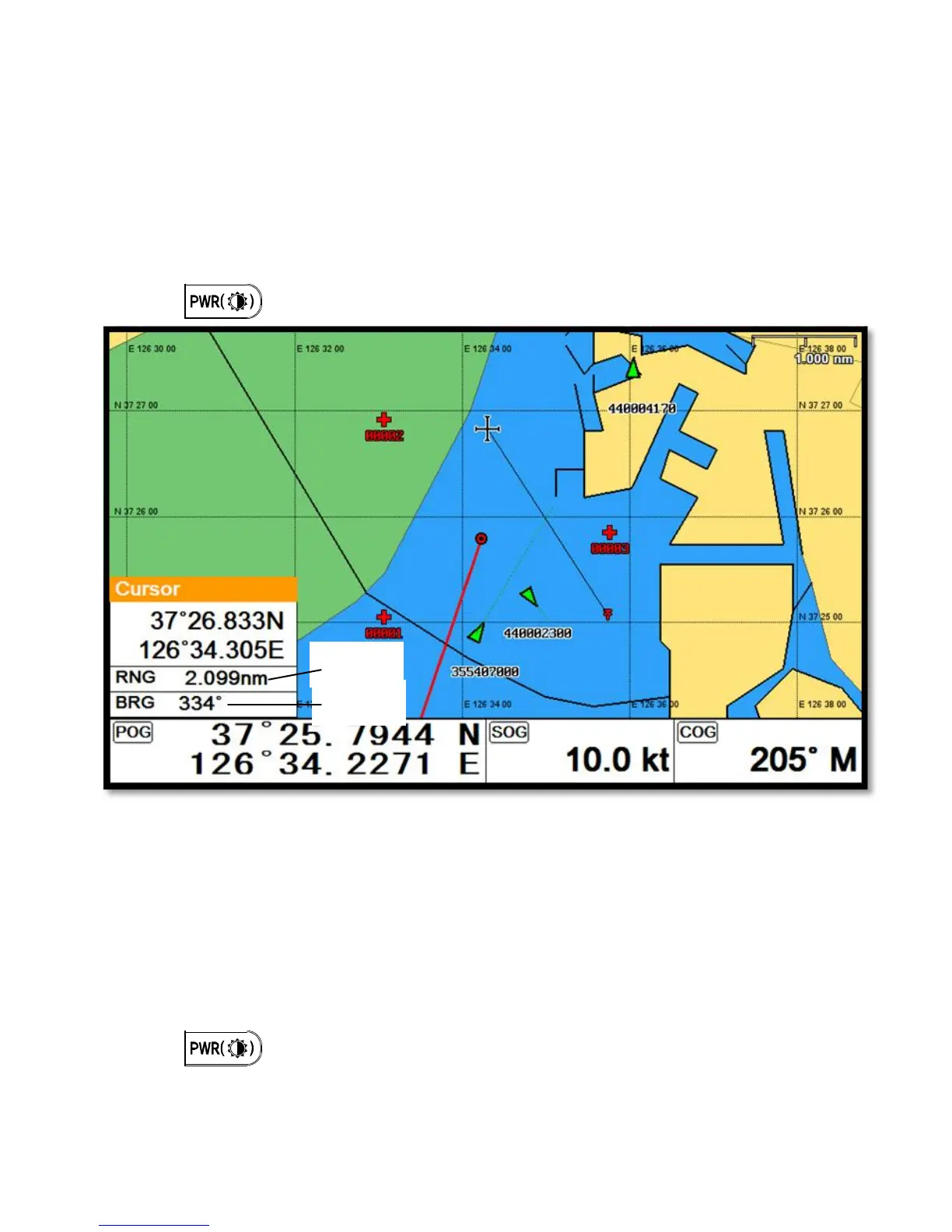 3. The cursor windows provides the distance and bearing between A and B.