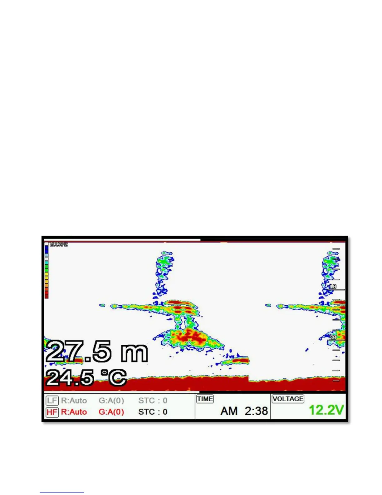appearing in the display. Bottom contours and fish echoes are displayed at the depths where they are