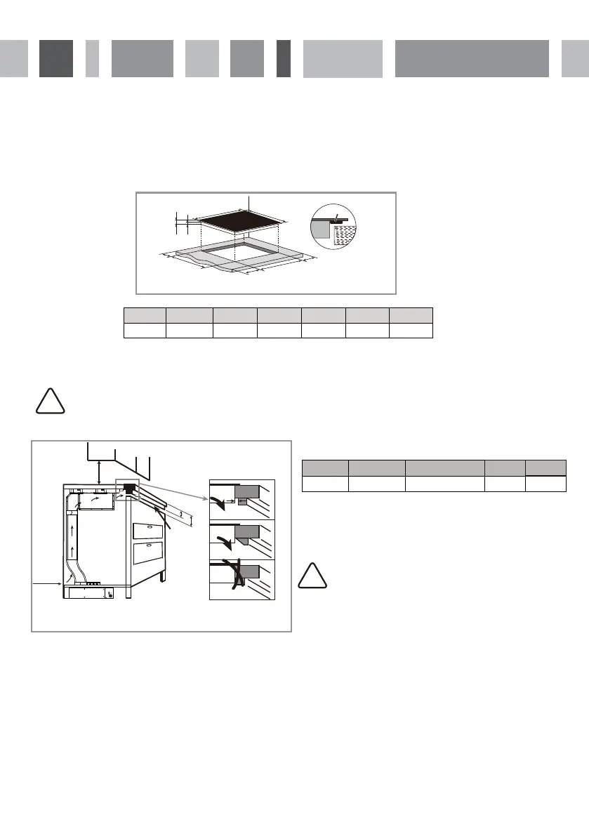 • You use heat-resistant materials (such as ceramic tiles) for the wall surfaces surrounding the hob.