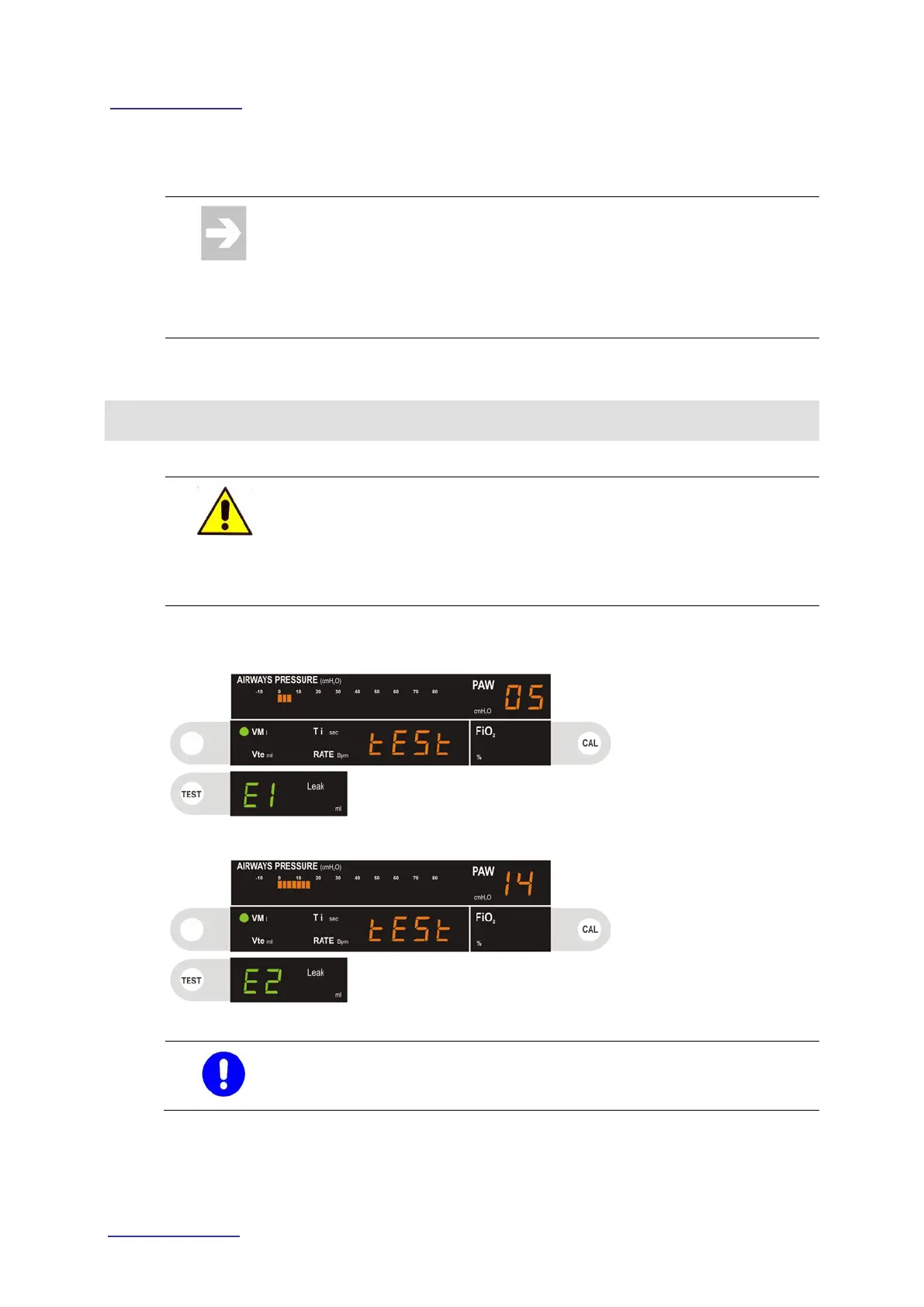 The values obtained during the LEAK TEST are displayed for the