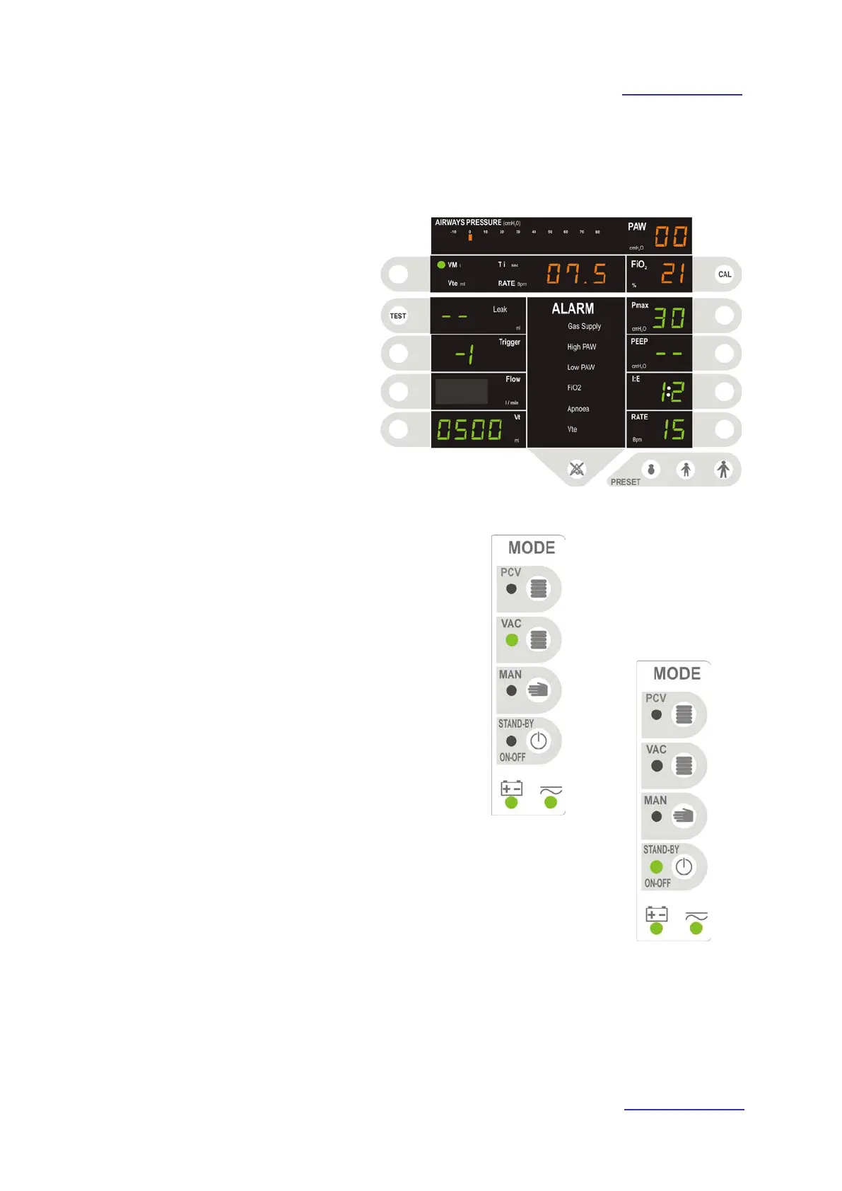 Press the VAC key: the anaesthesia unit