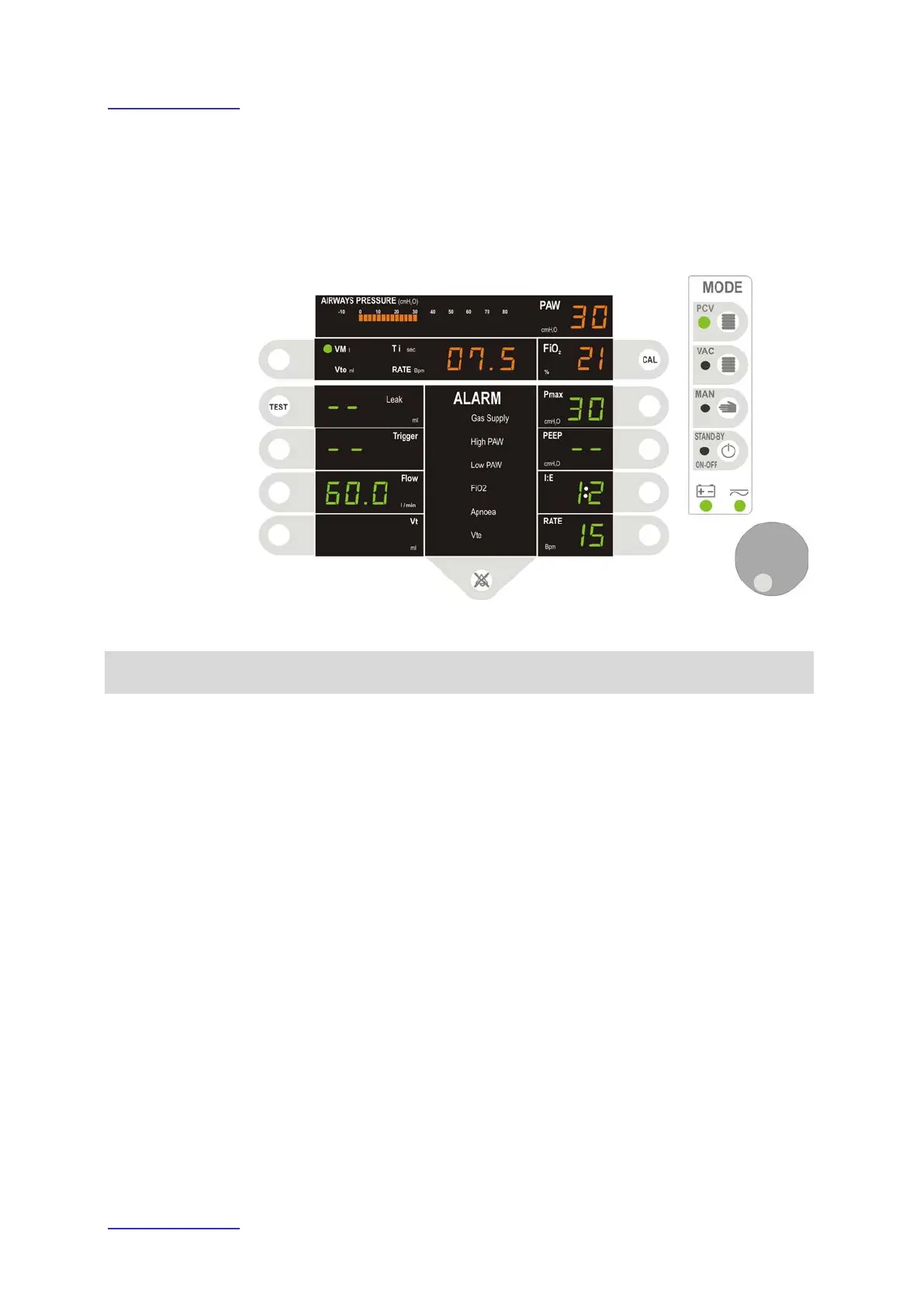 in which the system delivers a ventilation at a preset inspiratory pressure (Pmax), a
