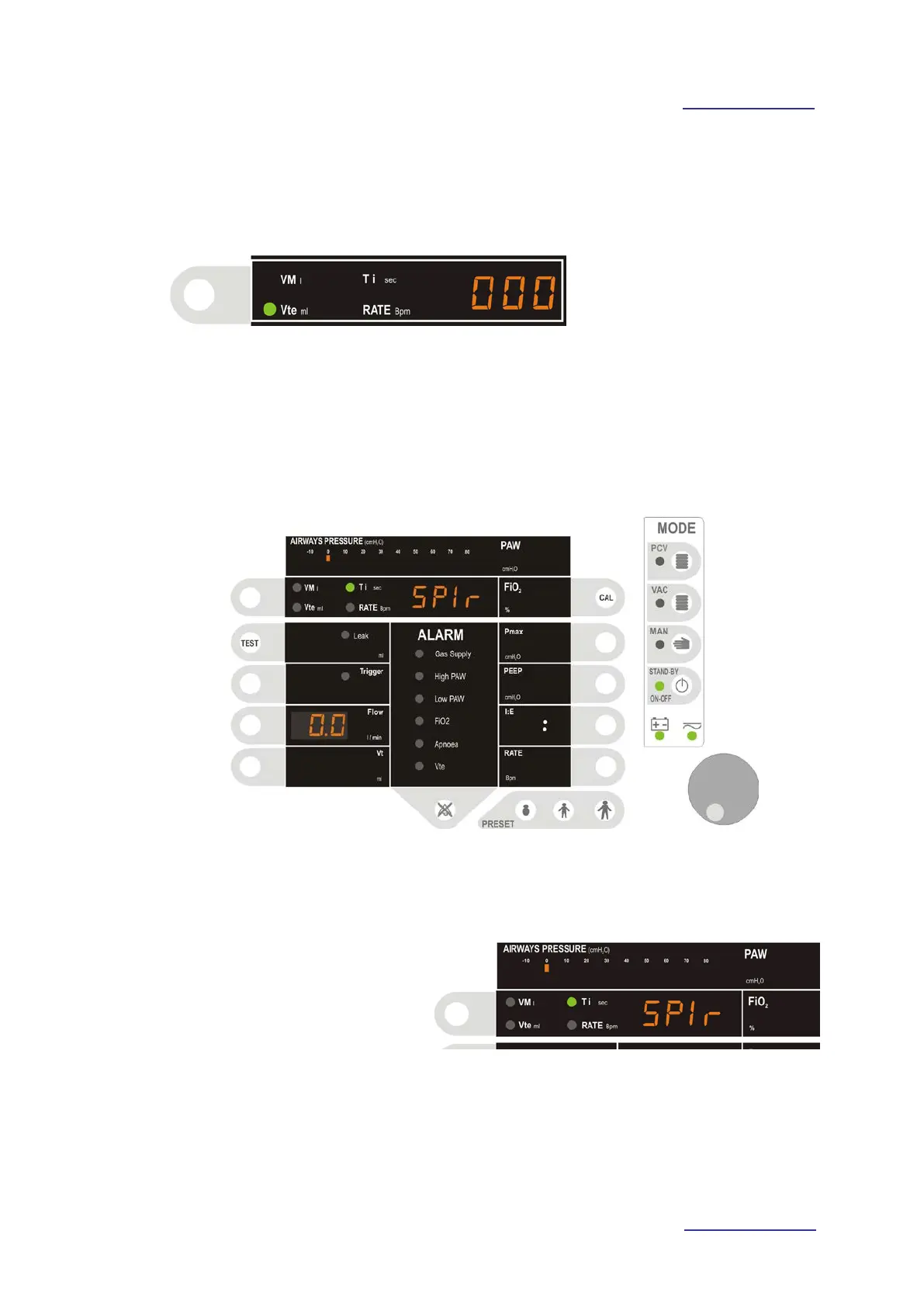 1. Press for around 5 seconds the soft key of ventilation parameters monitoring.
