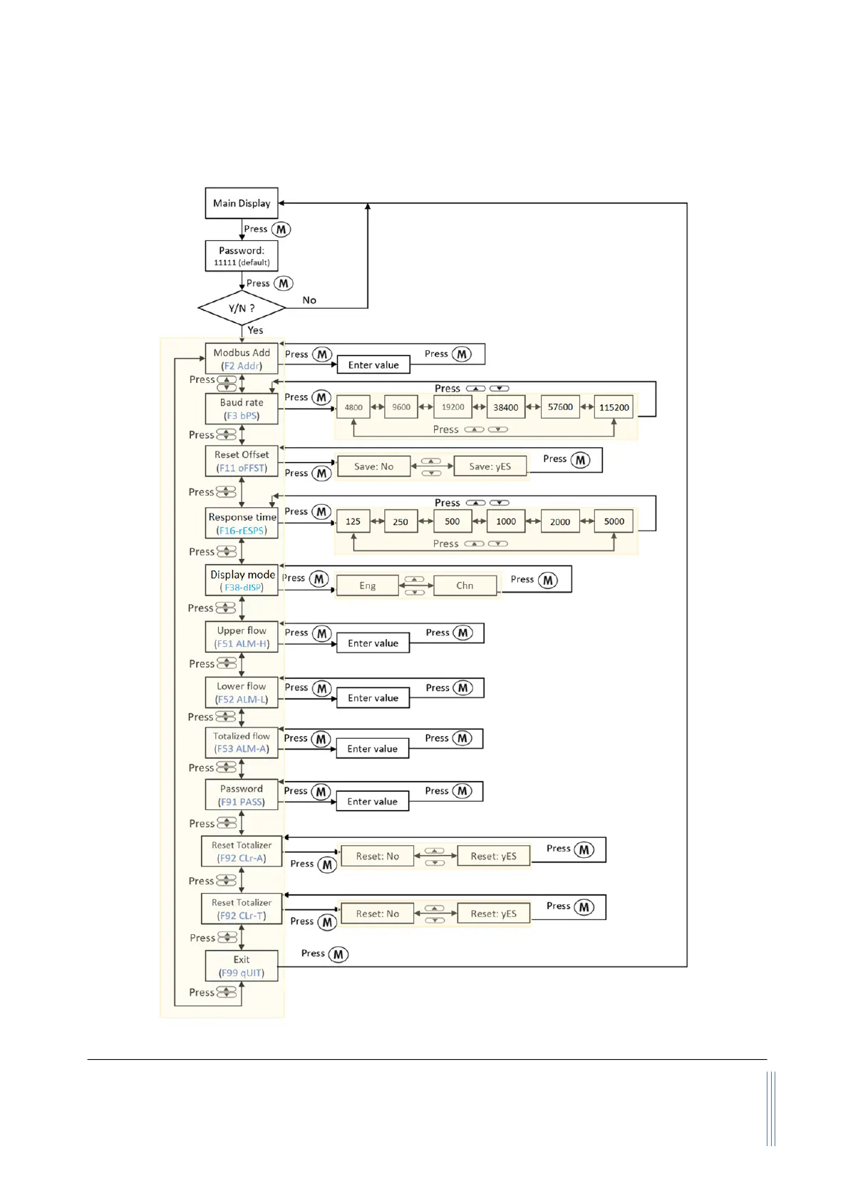Figure 5.3: MF5806E1 MENU key sequence