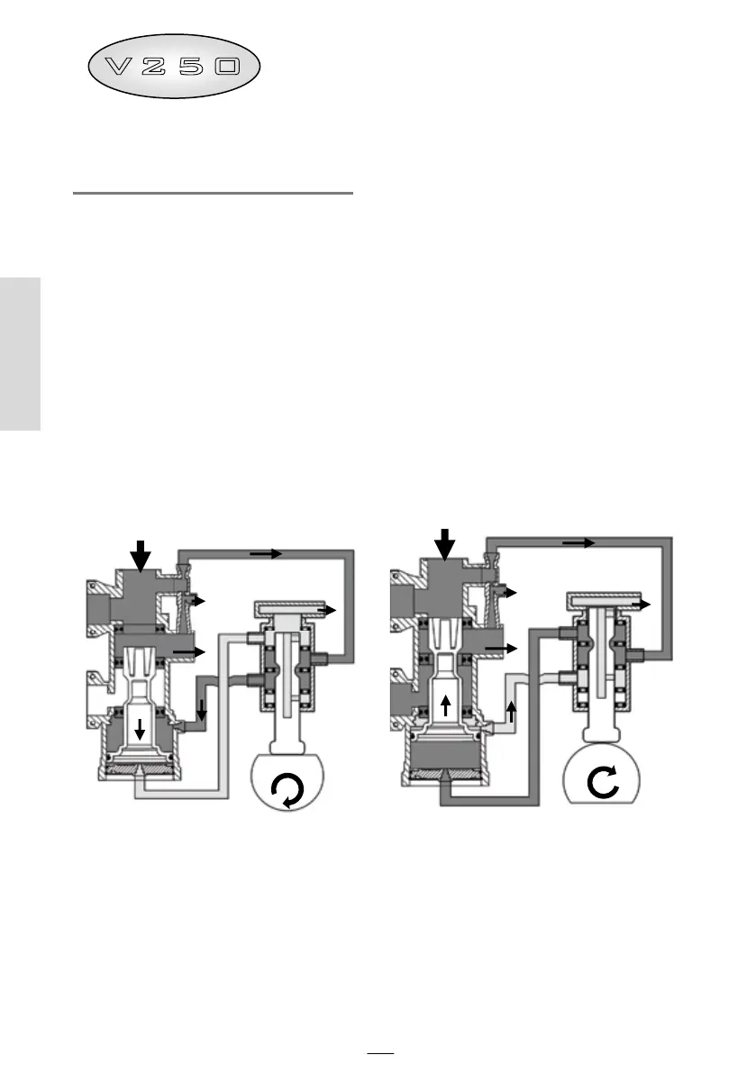 The V250 valve is operated by properly pressurizing the valves chamber from on side