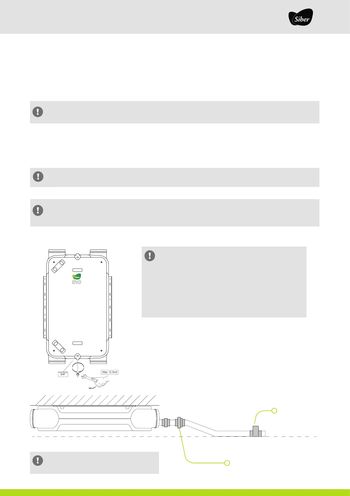 The SIBER DF EVO 1/2 must always be fitted with a condensate drain. Condensation water must be drained off.