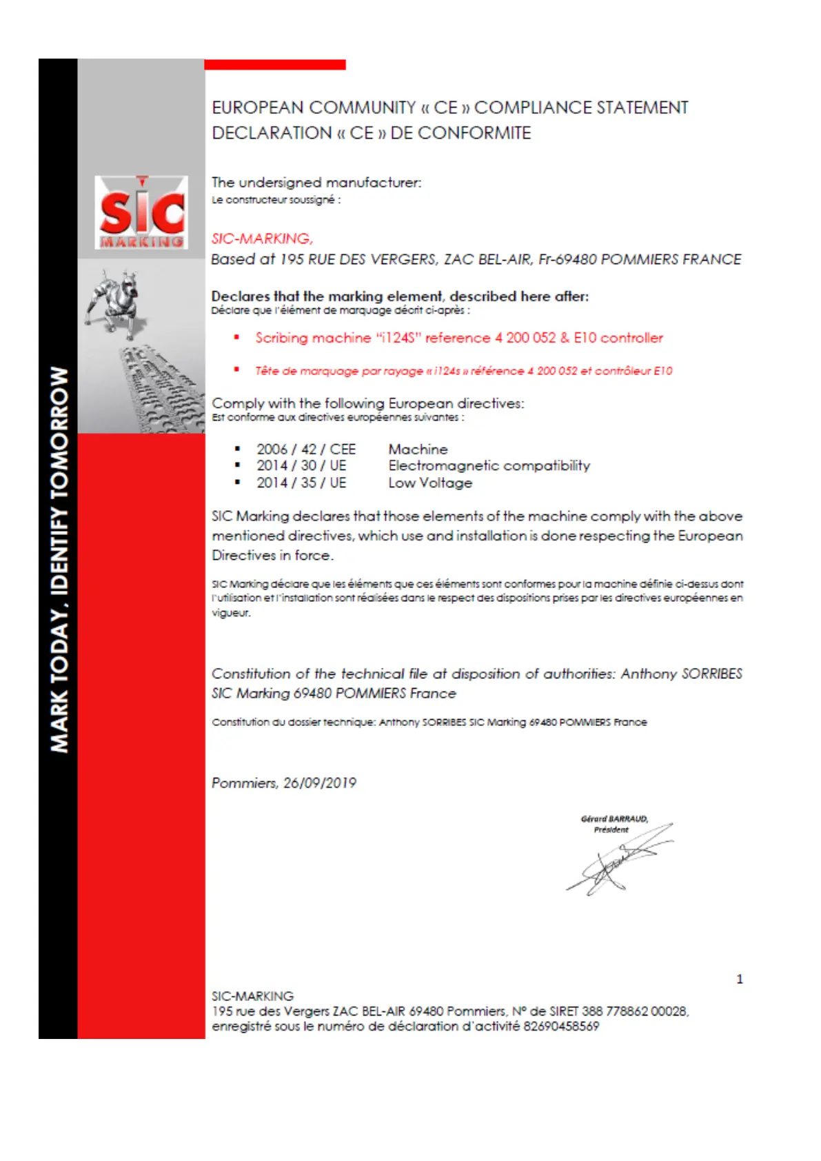 Sic Marking i124s - CE Compliance Statement