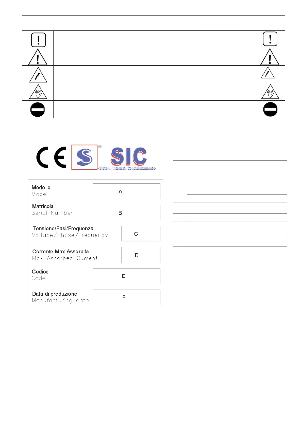 IDENTIFICAZIONE UNITA’ IDENTIFICATION OF THE UNIT