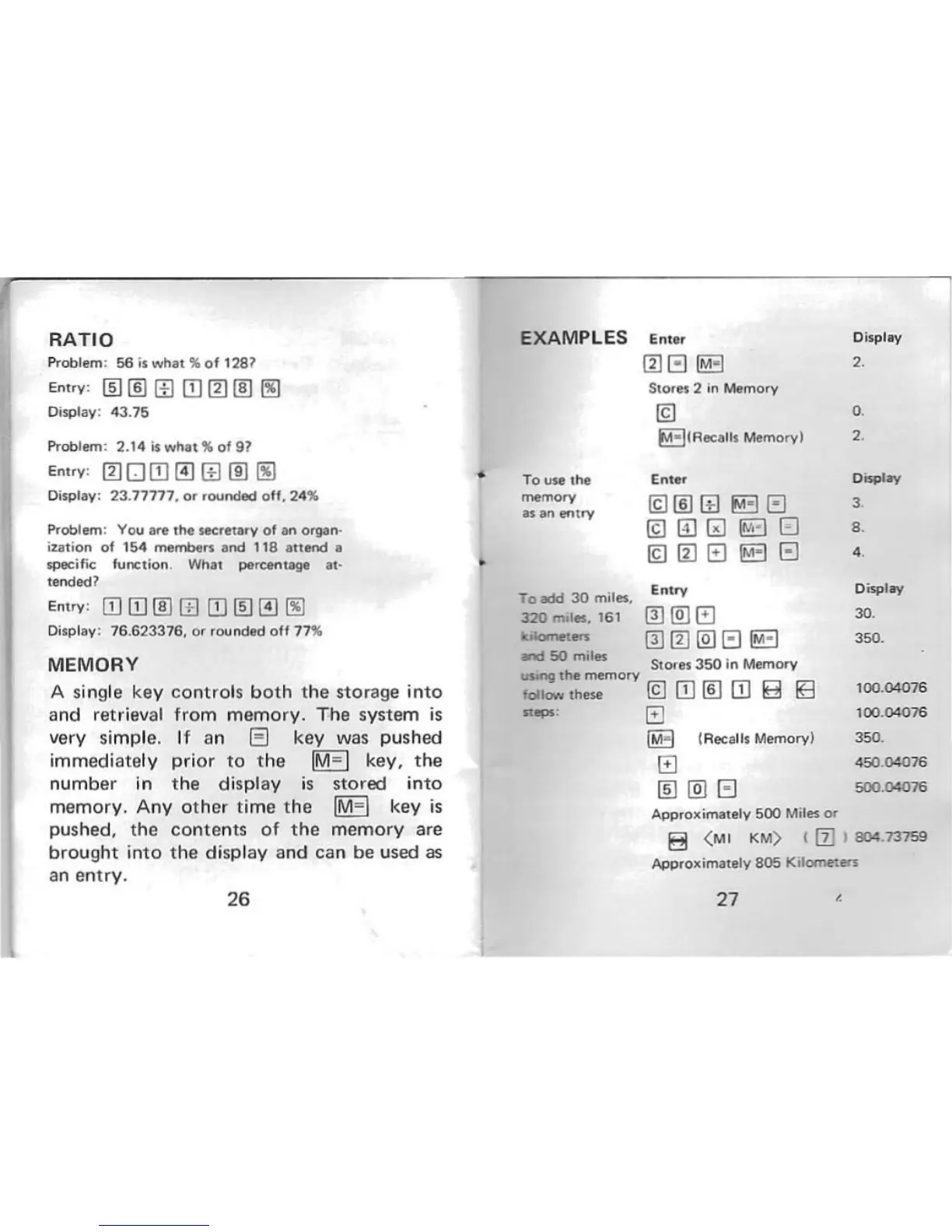 SIC MCC - Ratio Calculation Guide; Ratio Calculation Examples; Calculator Usage Examples; Memory Usage Examples